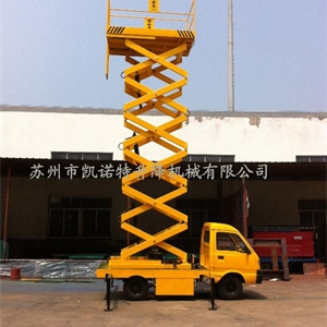 汽車載式液壓升降平臺(tái)是由升降臺(tái)和汽車配套改 裝而成的。它接取汽車引擎動(dòng)力,實(shí)現(xiàn)升降臺(tái)的升降功能。適用于大 流動(dòng)量的高空作業(yè)。